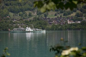 appelle ses ouailles en train de boire un délicieux apéritif, au soleil, devant un lac de Brienz vert